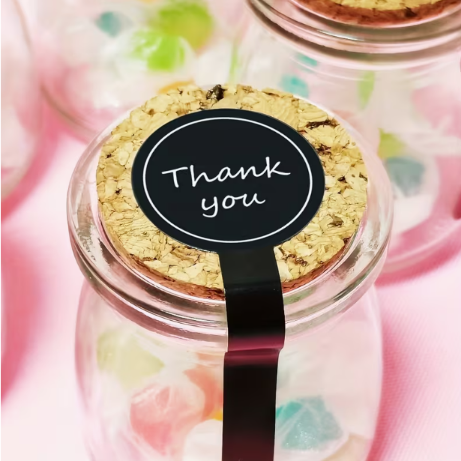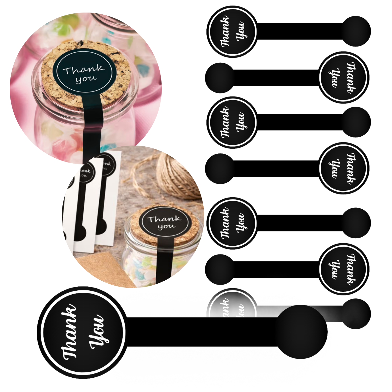 - Okrągła część z napisem „Thank you” subtelnie podkreśla wdzięczność, a dolna, czarna część idealnie sprawdza się do zamknięcia pudełka, słoika lub opakowania.