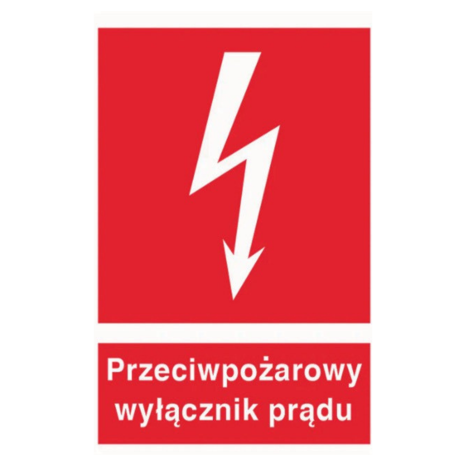 Naklejka informacyjna PRZECIWPOŻAROWY WYŁACZNIK PRĄDU 150x120mm