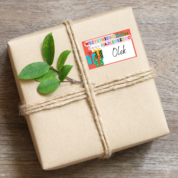 - Kolorowe naklejki na prezenty urodzinowe to prosty sposób, aby nadać upominkowi osobisty i wyjątkowy charakter. Dzięki miejscu na wpisanie imienia możesz w kilka sekund spersonalizować prezent i sprawić, że będzie jeszcze bardziej wyjątkowy – bez potrzeby dodatkowych bilecików.