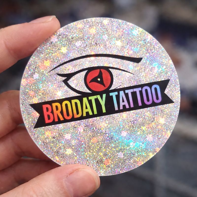Naklejki z logo na folii BROKATOWEJ