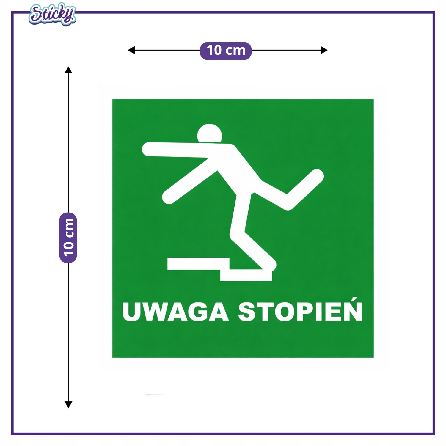 Naklejka informacyjna UWAGA STOPIEŃ ostrzegawcza 10cm BHP